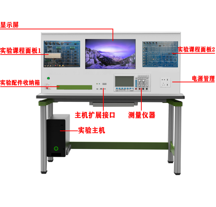 采用23.8寸高清LCD,用于显示实验指导书、接线练习、实验结果、AI辅助教学。