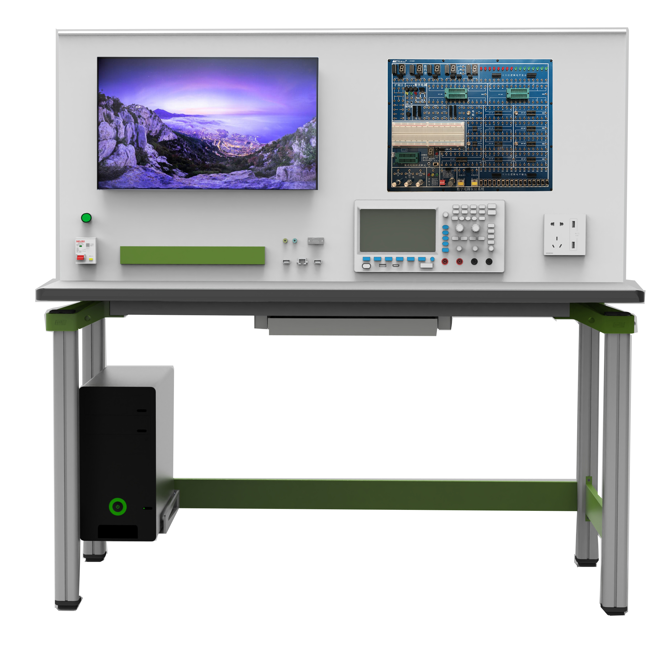 采用23.8寸高清LCD,用于显示实验指导书、接线练习、实验结果、AI辅助教学。